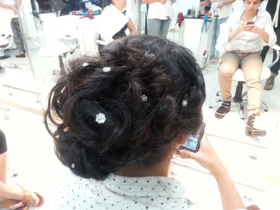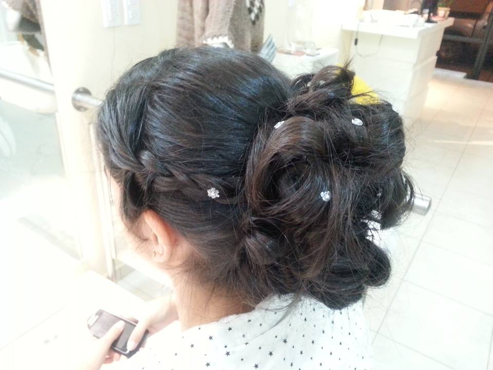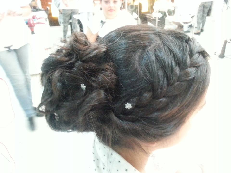 El recogido descontracturado fue armado en forma de ondas entrelazadas, formado un maravilloso, significativo e inolvidable peinado, acompañado de pequeña florecillas con brillos que destacaron aún más el estilo.